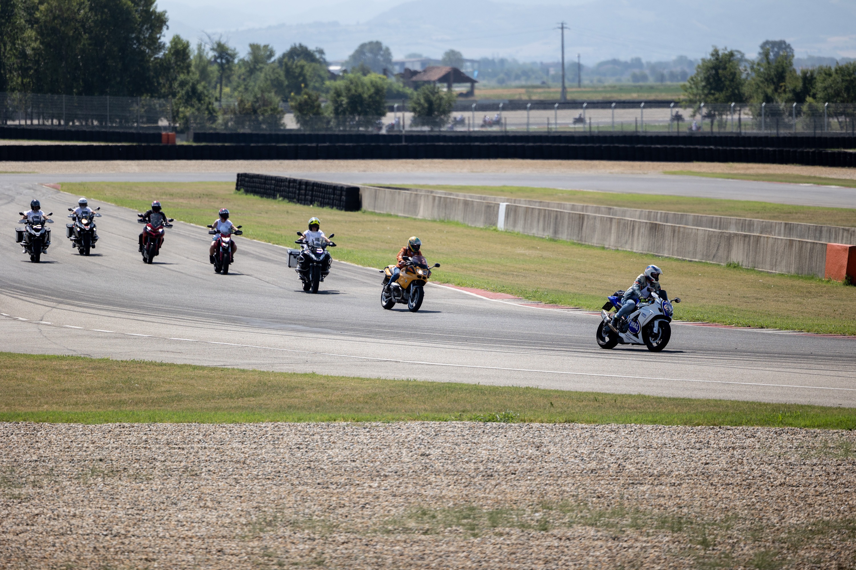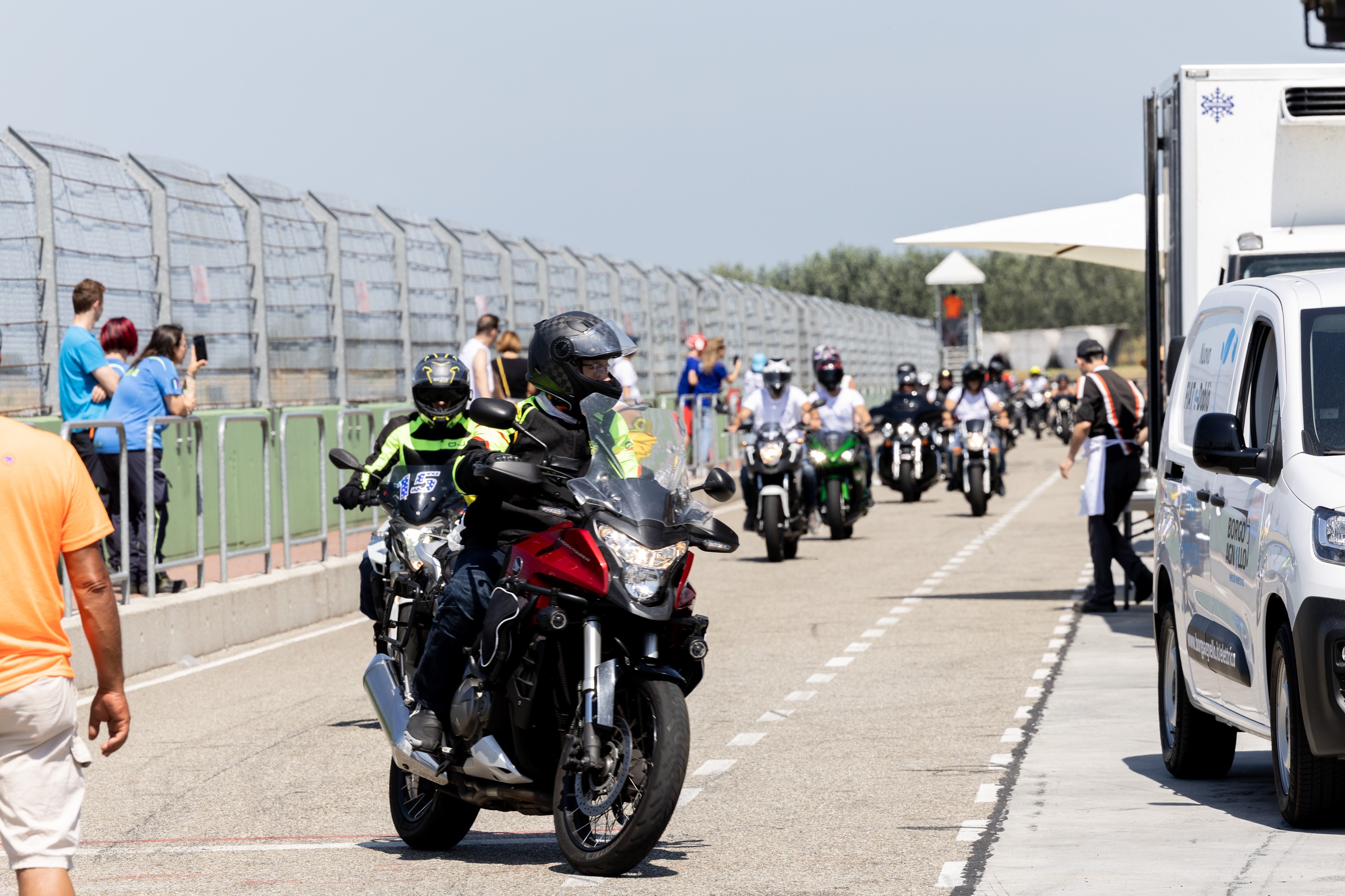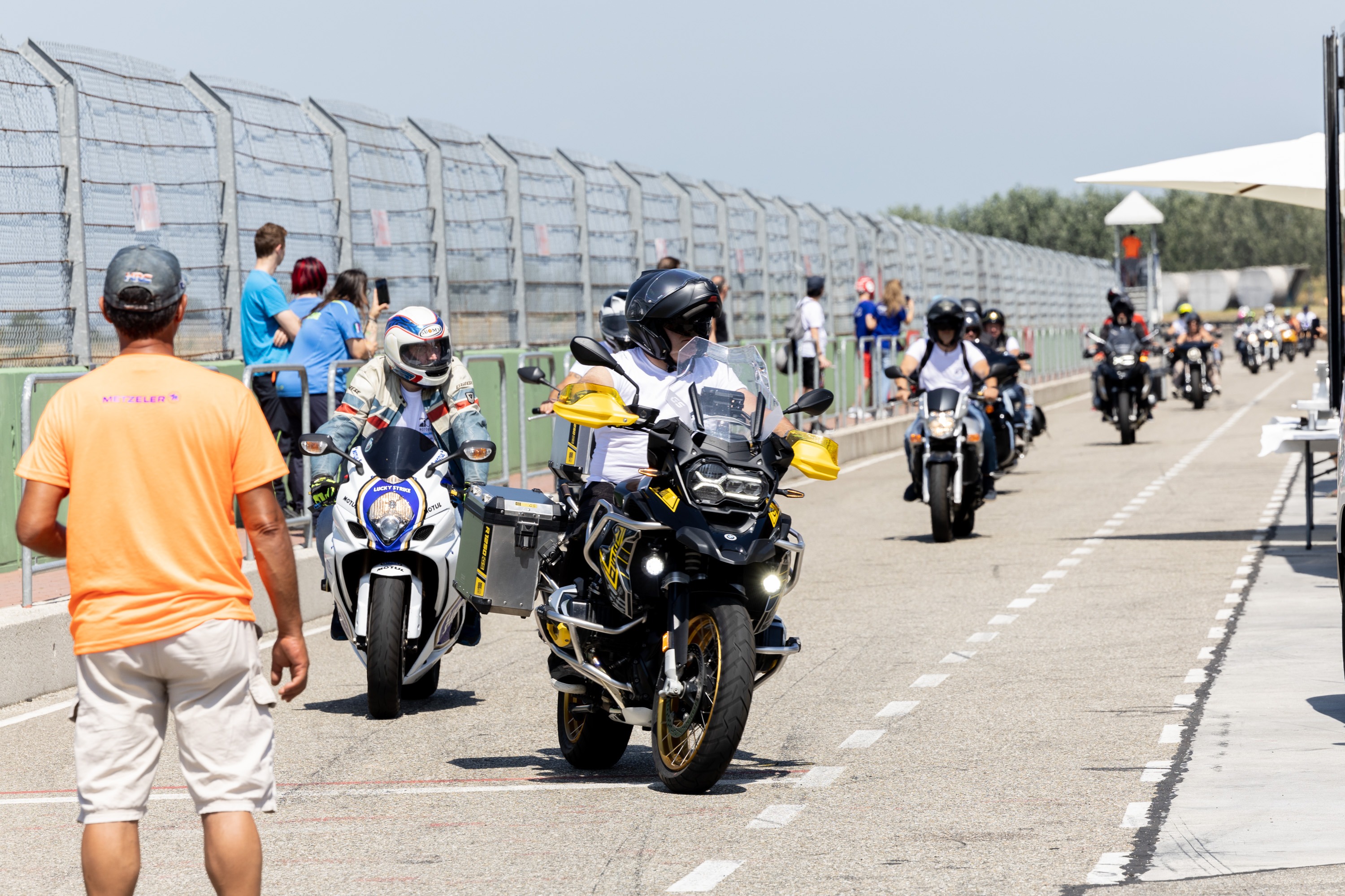 Dopo aver parcheggiato la tua moto verrai accolto con una colazione di benvenuto e a seguire parteciperai alla Parata in pista che ti permetterà, insieme a tutti i centauri, di provare l'emozione di scendere in pista!
