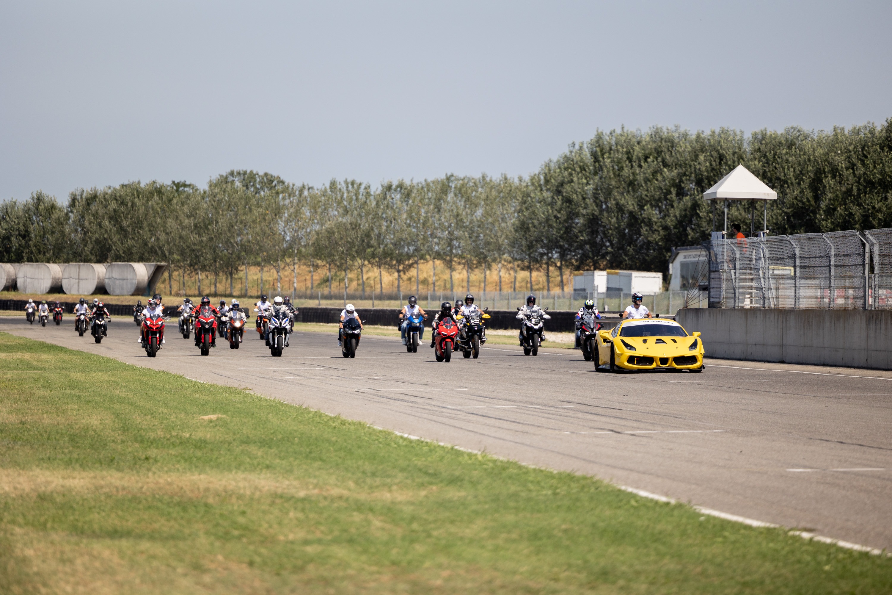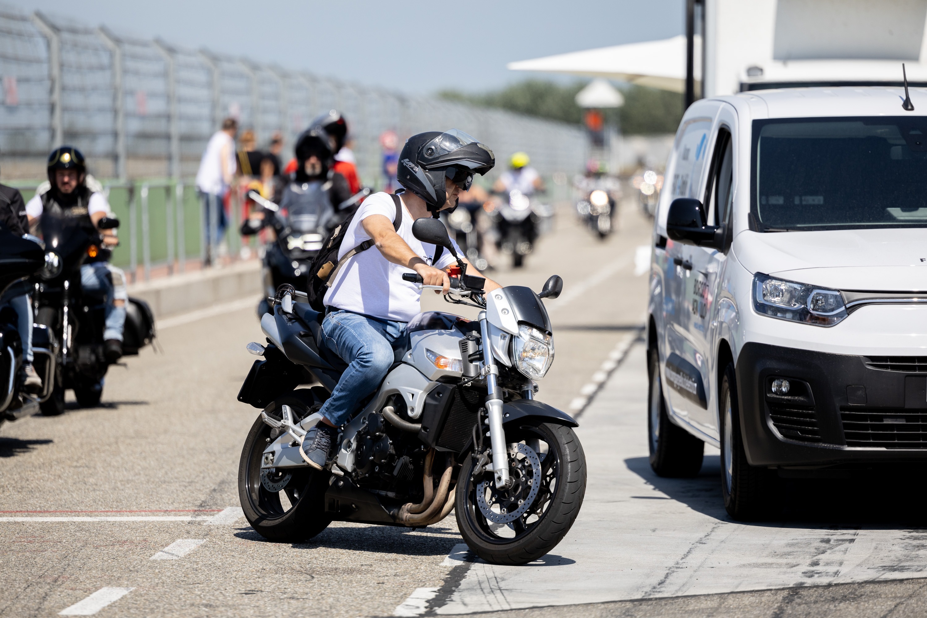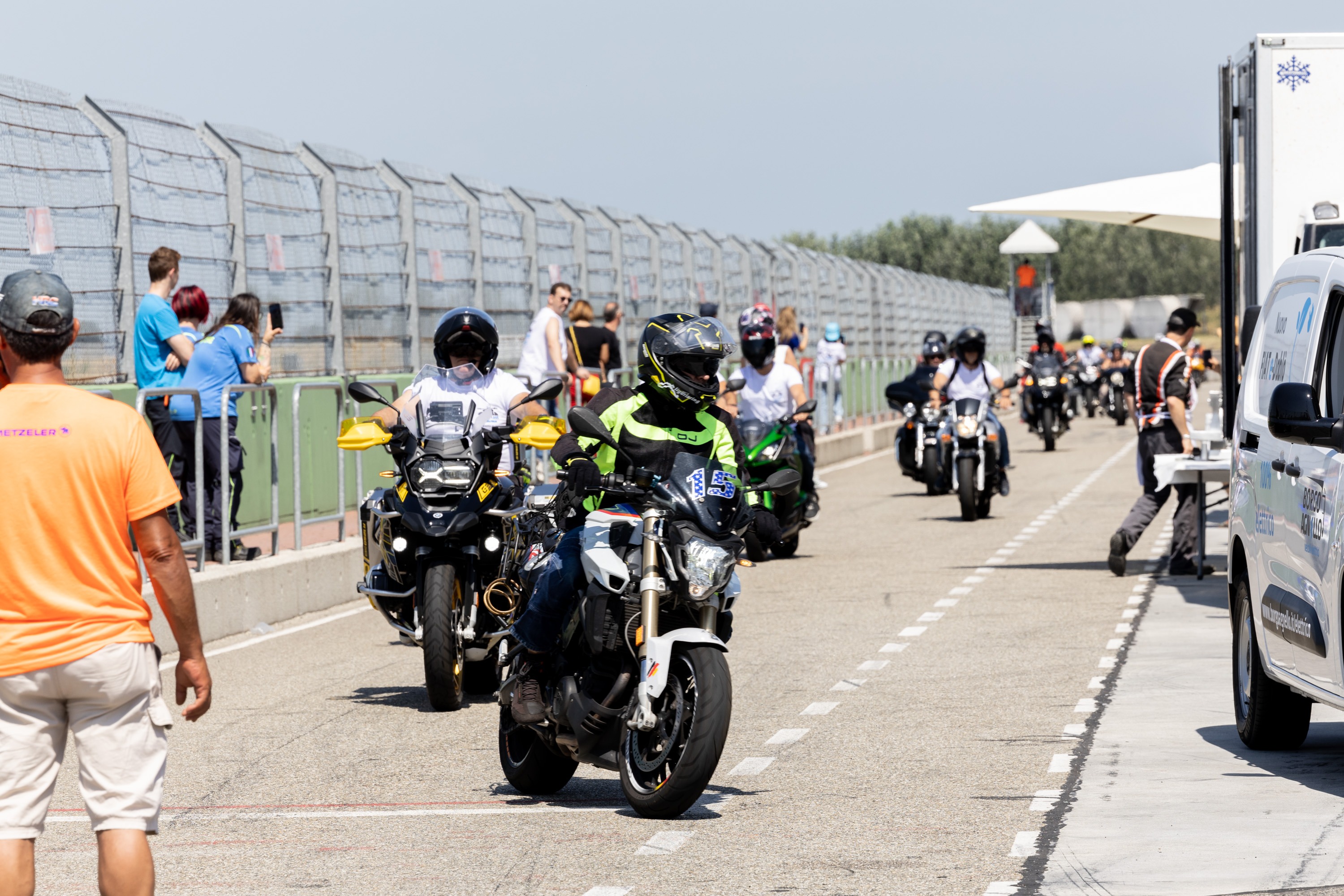 Dopo aver parcheggiato la tua moto verrai accolto con una colazione di benvenuto e a seguire parteciperai alla Parata in pista che ti permetterà, insieme a tutti i centauri, di provare l'emozione di scendere in pista!